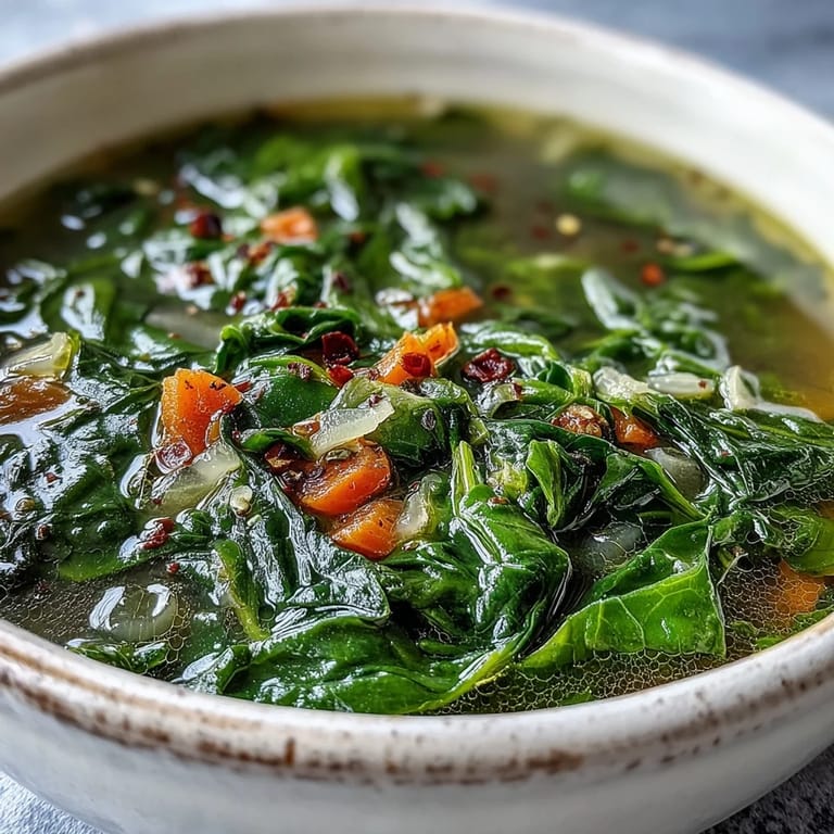 Swiss chard develops a mild, slightly earthy flavor when simmered, similar to spinach but with a bit more body. The stems provide a pleasant crunch similar to celery, while the leaves become tender and silky in the hot broth.
