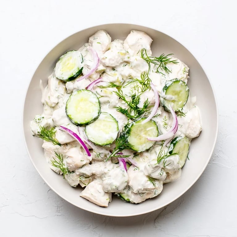 Save Summer heat hit my tiny apartment that afternoon, the kind of sticky weather where cooking anything feels like a personal assault. I had leftover rotisserie chicken from yesterday and a massive cucumber from my mom garden that she practically forced into my bag during Sunday dinner. Something cool and crisp was the only thing that made sense. I mixed Greek yogurt with fresh dill and lemon juice, folded in the chicken, and took that first bite right there leaning against my kitchen counter. The relief was immediateβcreamy, refreshing, and somehow lighter than air.