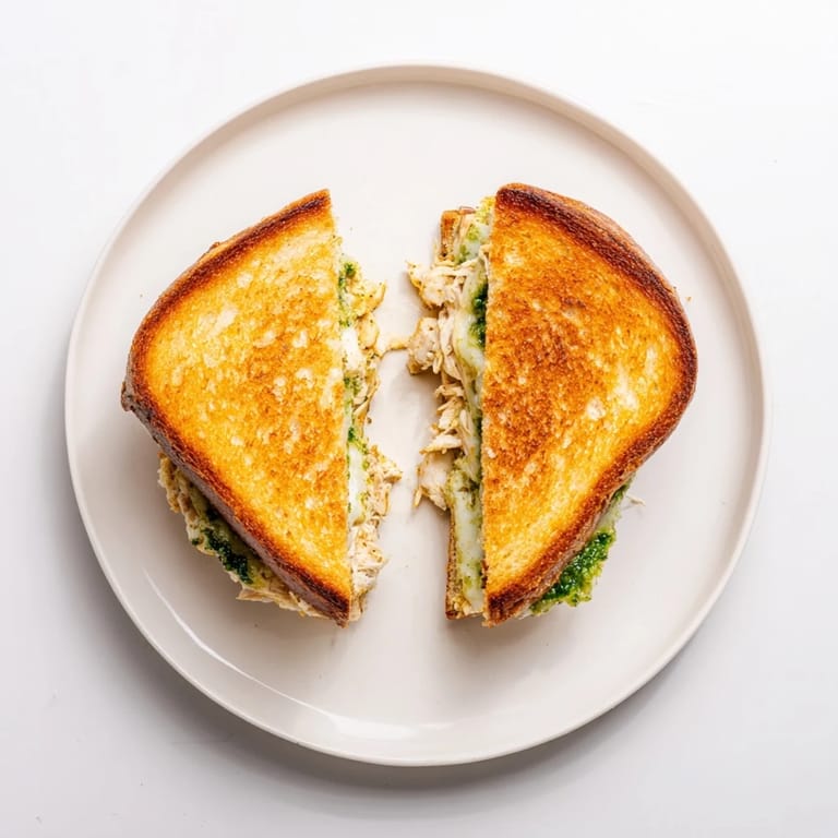 Save The smell of pesto always pulls me back to my tiny first apartment kitchen, where I discovered that leftover rotisserie chicken and a jar of basil sauce could transform ordinary cheese into something that felt fancy even on a Tuesday. This sandwich came together during one of those nights when I was too tired to cook properly but too hungry to settle for cereal. The first bite made me realize how pesto's bright, herby flavor cuts through rich mozzarella in ways regular grilled cheese never could.