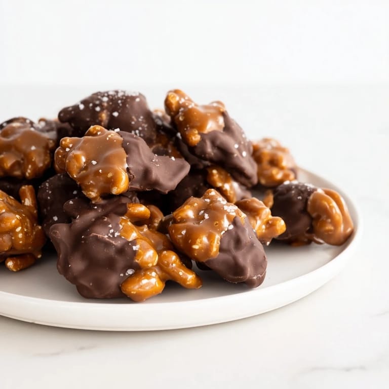 The whole point of these clusters is that contrast between the snap of chocolate, the chew of caramel, and the crunch of pretzel—one breaks, one's soft, one's crispy, and your brain doesn't know which sensation to focus on. This is why you can't just melt everything into one mushy situation; each layer needs its own moment to shine. The refrigeration time is crucial because warm chocolate feels like barely-set pudding and defeats the entire purpose.