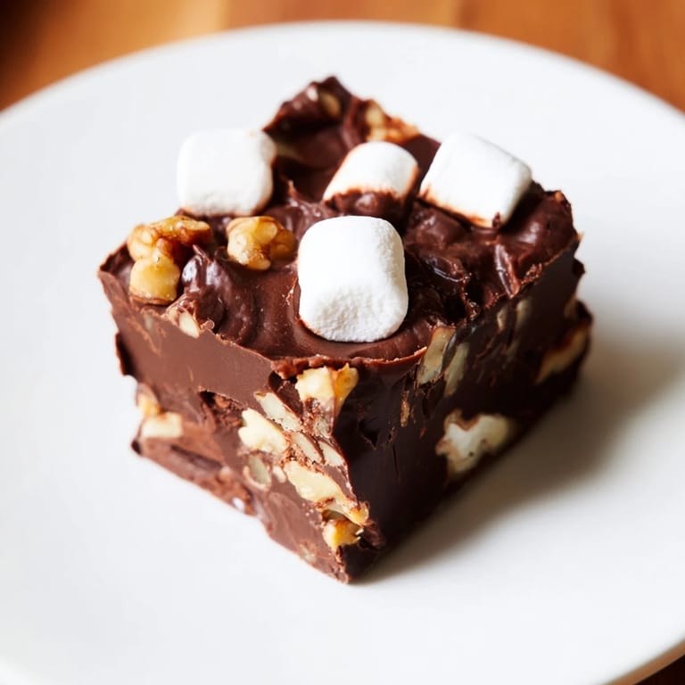 Save My neighbor knocked on my door one rainy afternoon with a tin of rocky road fudge she'd made, and I was hooked after one bite—that perfect collision of creamy chocolate, marshmallow fluff, and crunchy nuts felt like edible happiness. I spent the next week pestering her for the recipe, and when she finally shared it, I realized how forgiving and quick it actually was. Now whenever I need something that feels fancy but takes barely any effort, this is what I reach for.