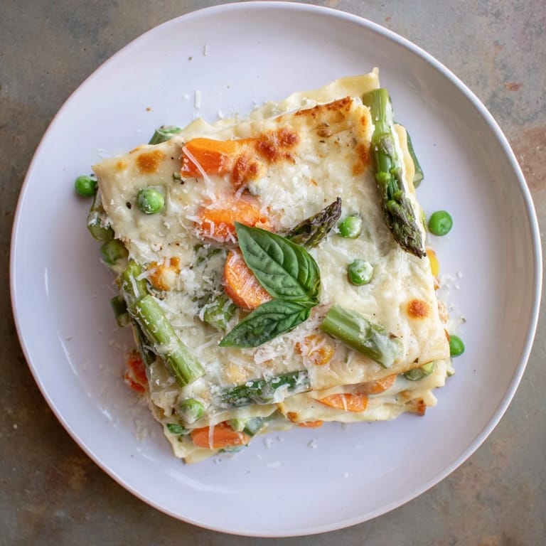 Save The first time I made this lasagna, my roommate walked in and announced someone had ordered fancy restaurant takeout. The smell of garlic and spring vegetables had filled our entire apartment building. I remember standing at the counter, rapidly chopping asparagus while the Alfredo sauce simmered, completely losing track of time. When we finally sat down to eat, the vegetables were still crisp-tender, the sauce was velvety, and we both went back for seconds. That night I learned lasagna does not need meat to feel special.