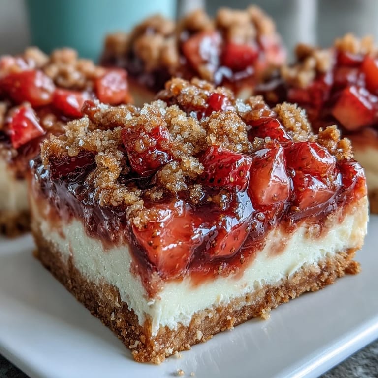 These bars keep in the fridge for up to four days if you cover them tightly, though they've never lasted that long in my house. I've also frozen them individually wrapped in plastic, and they thaw beautifully in about an hour on the counter. Serve them cold straight from the fridge, or let them sit out for ten minutes if you want the cheesecake layer a little softer.