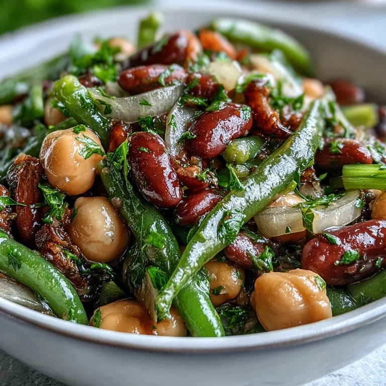 Save My neighbor Sarah showed up at a summer gathering with this three-bean salad, and honestly, I was skeptical—it looked so simple, just beans in a bowl. But one bite of that tangy, slightly sweet vinaigrette and I understood why she made it for every potluck. The bright pop of color and the way the beans had soaked up all that flavor made me realize some of the best dishes don't need complicated technique, just good ingredients and patience.
